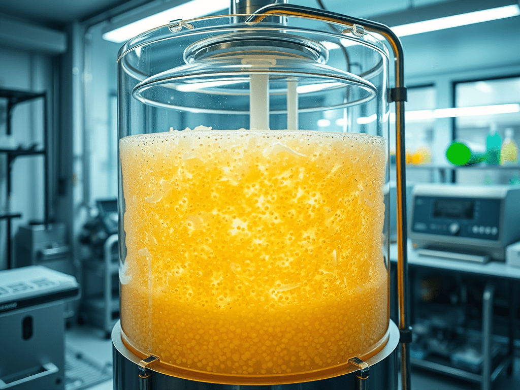 - Yeast Cultivation: The process begins with cultivating a proprietary yeast strain in a 50-liter fermentation tank.